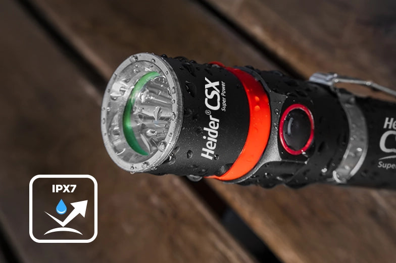 IPX-7 standartı suya dayanıklı gövde yapısı ile Heider CSX 5 metreye kadar su geçirmezdir.
