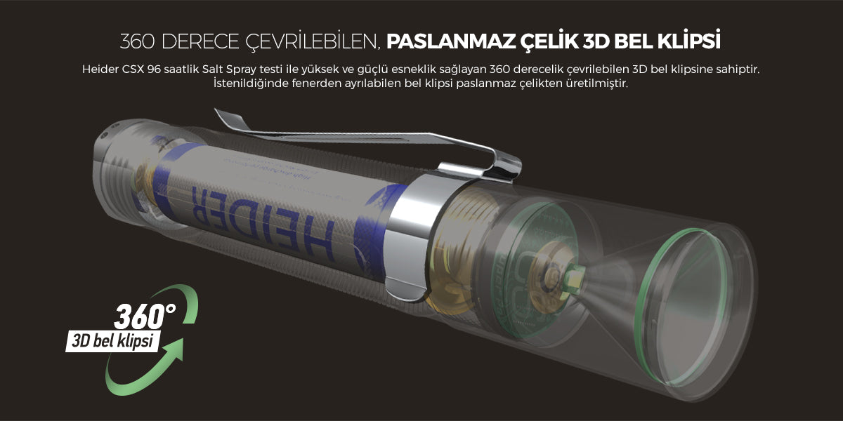 Islak, çamurlu ya da eldivenli kullanım fark etmez. Heider CSX Super Power V4, elden kaymayı önleyen gövde yapısı sayesinde daima güvenli tutuş sağlar. Kompakt yapısına rağmen tam profesyonel performans sunar. Taktik görevler, kamp, acil durumlar için tasarlanmış gerçek bir mühendislik harikasıdır.