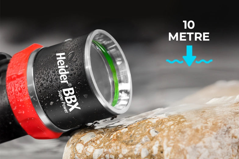 Heider BBX, suya ve neme karşı koruma sağlamak için O-Ringlerle mühürlenmiştir. Heider BBX'i 10 metreye kadar su altında ve her türlü hava koşulunda kullanabilirsiniz. Dayanıklı, çok yönlü, güçlü ve şık görünümlü!