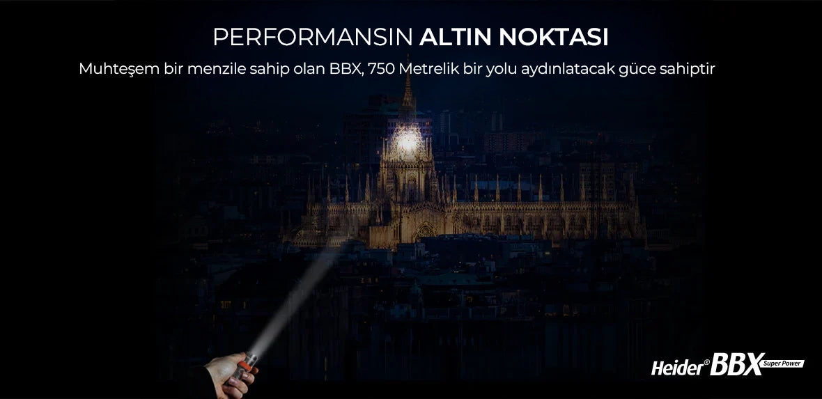 Geliştirilmiş Cree High Power LED teknolojisine sahip Heider BBX güçlü bir aydınlatma gücüne sahiptir.