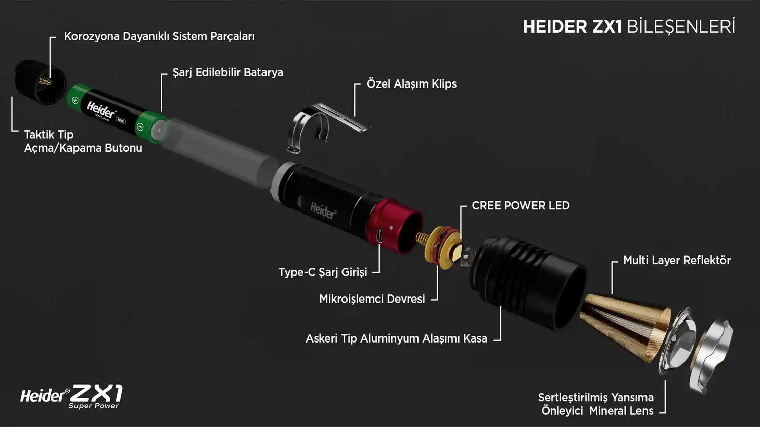 Zorlu koşullara meydan okuyan Heider ZX1, IP44 suya dayanıklılığı ve darbelere karşı direnciyle sizi asla yarı yolda bırakmaz. Sert eloksal alüminyum gövdesi, hem hafifliği hem de dayanıklılığı ile uzun ömürlü bir kullanım sunar. Hangi zorlu koşulda olursanız olun, Heider ZX1 yanınızda!