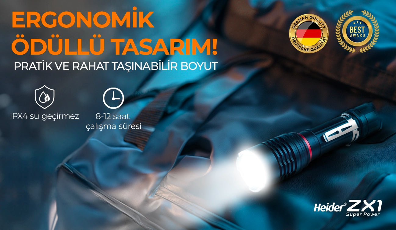 HEIDER ZX1 suya ve darbeye dayanıklı olduğu için oldukça sağlam bir fenerdir.