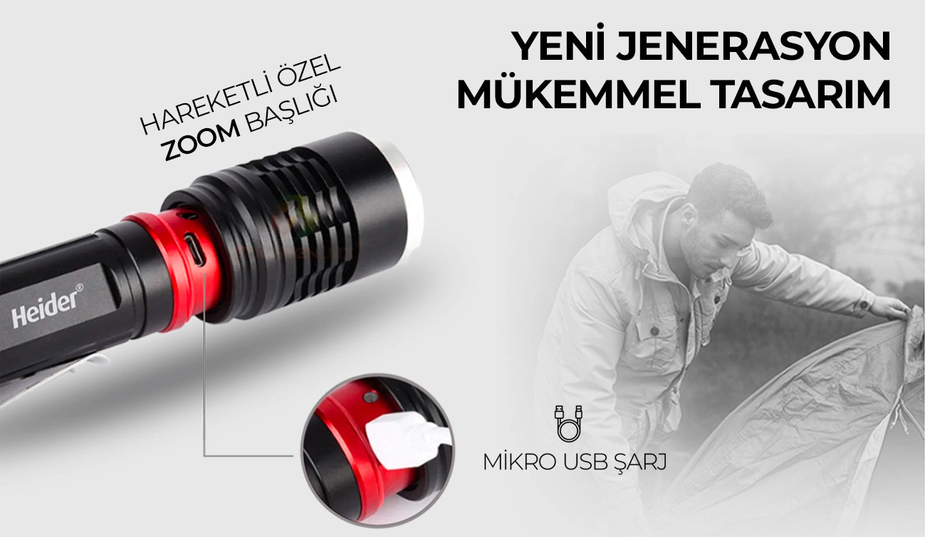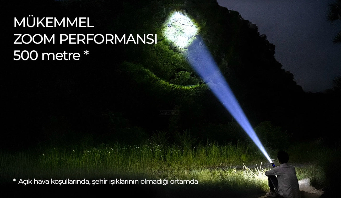 Heider ZX1, 500 metreye kadar olan çalışma mesafesiyle karanlık ortamlarda güvenliğinizi artırır. Tam zoom özelliği, ışık alanını ihtiyacınıza göre ayarlamanıza olanak tanır; böylece geniş alanları veya uzak mesafeleri kolayca aydınlatabilirsiniz. Dağ yürüyüşü, kamp kullanımı veya gece avcılığı için ideal bir seçimdir.