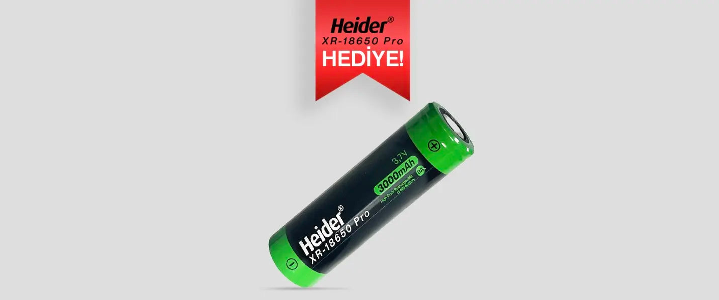 3000mAh kapasite sunan Heider XR-18650 Pro şarjlı pil, el fenerleri grubunda dünyada en yüksek performansa sahiptir. CE ve ROHS sertifikalıdır.