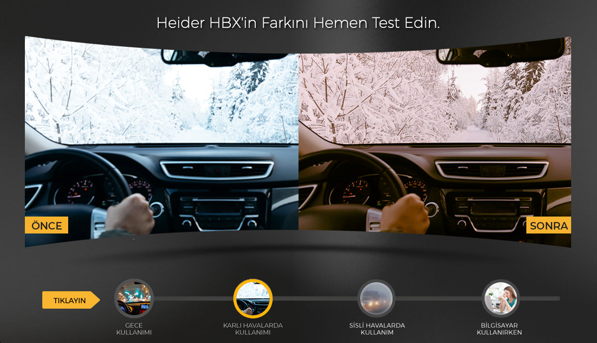 Bu koşullarda araç kullanmak oldukça güçtür. Yağmurlu havalarda araba camına düşen damlaların sebep olduğu yansıma, sisli havaların görüş mesafenizi kısaltması veya karlı havaların kaçınılmaz parlaklığı ve görüş zorluğu. Bunlar tartışılmaz gerçekler, tabii ki eğer Heider HBX’iniz yoksa.
