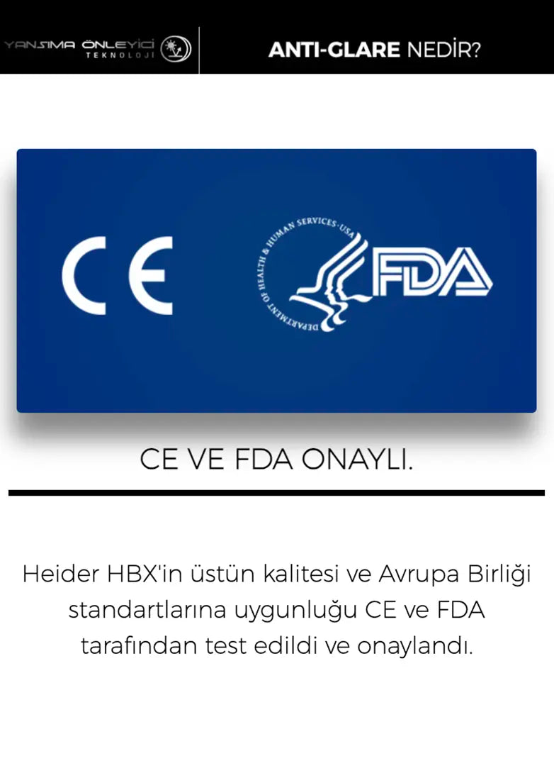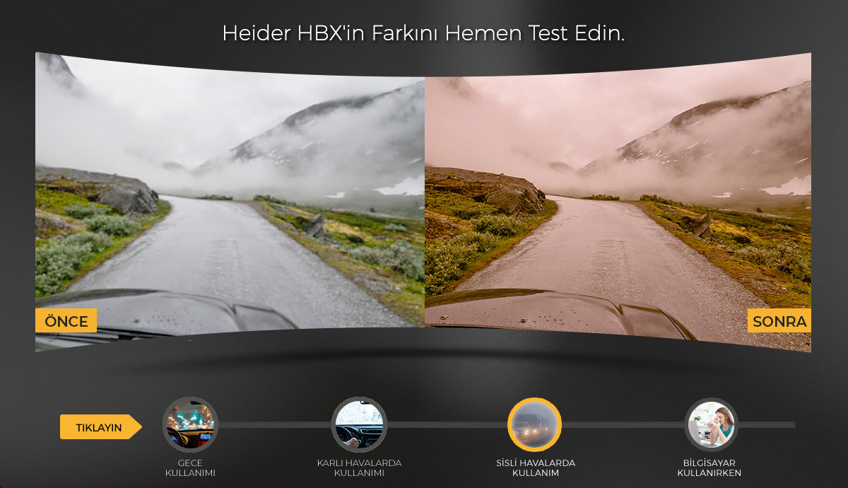 Heider HBX göz yorgunluğunu ve kuruluğunu azaltır. Parlamayı ve yansımaları önler. Kontrastı ve çözünürlüğü arttırır. Kullandığınız her alanda görüş kalitenizi yükseltir.