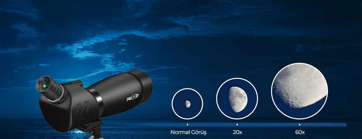 60x büyütme kapasitesine sahip Prozoom X1’i başlangıç seviyesinde gökyüzü gözlemlerinizde de kullanabilirsiniz. Gece açık havada ayı ve güneş sistemimizin gezegenlerini rahatlıkla gözlemleyebilirsiniz.