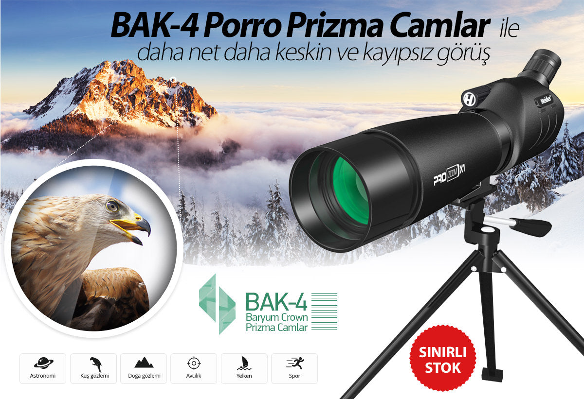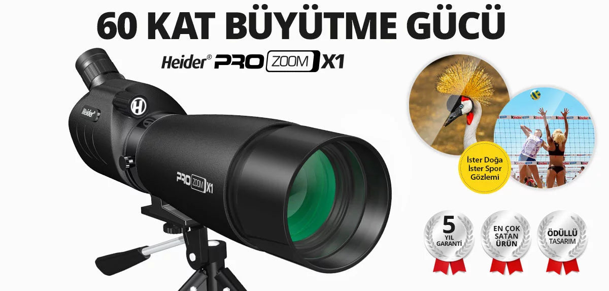 Bir çok doğa sporunda mükemmel görüntüleme kalitesi sunan Heider Pro Zoom’u yanınızdan ayıramayacaksınız. 20-60 misli büyütme ile yakın ve uzak çeşitli nesneler üzerine yakınlaştırma yapabilirsiniz. İster doğa gözlemi, ister spor, astronomi veya avcılık için dilediğiniz gibi kullanabilirsiniz.