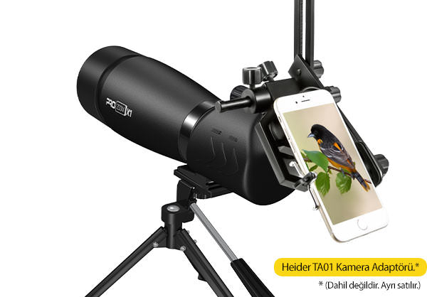 Dijital cep kameranızı Heider PRO ZOOM X1 Teleskobun mercek içine yerleştirin ve mükemmel fotoğraflar çekin.